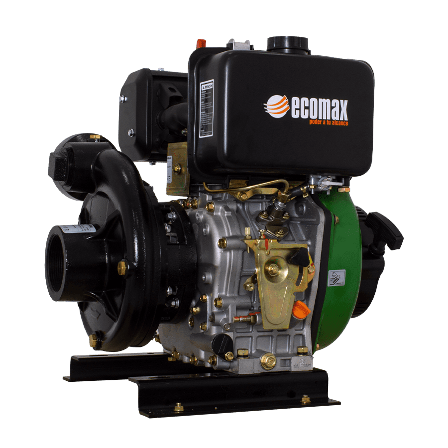 Motobomba diésel Ecomax ensamblada con nuestro innovador, característico y potente motor Ecomax. Motor diésel Ecomax de inyección directa, balanceado para evitar vibraciones y con sistema de inyección optimizado para asegurar una mejor combustión y un baj